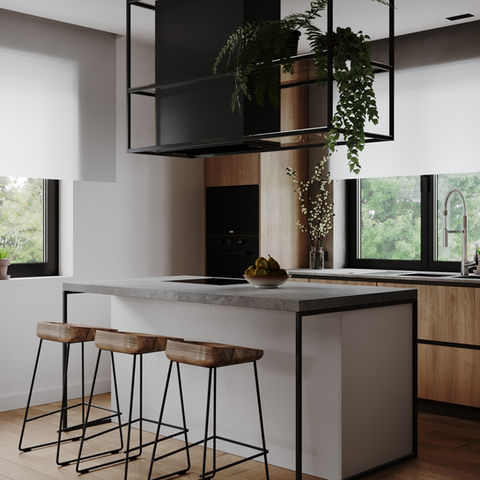 Основним бажанням замовника було передати через інтер'єр єдність з природою і сам характер заміського будинку. Тому в цих інтер’єрах ви побачите багато рослин, родзинкою яких, безумовно, є червоний клен у вітальні.