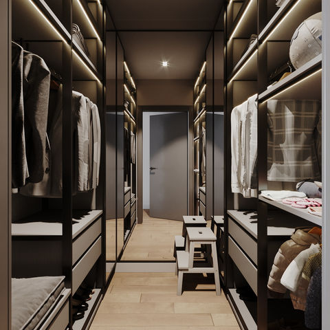 Батьківська зона другого поверху розділена на три окремі зони: спальню, санвузол і гардероб.